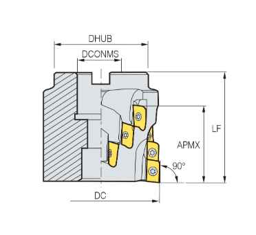 – Đài dao phay Alpha Mill, góc lưỡi cắt 90°