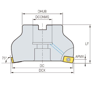– Đài dao phay Alpha Mill, góc lưỡi cắt 75°, phay khỏa mặt đầu.
