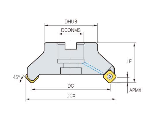 – Đài dao phay Rich Mill, góc lưỡi cắt 45°