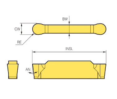 – Mảnh dao tiện cắt rãnh KGT, 2 cạnh cắt, dùng cho gia công biên dạng profile.