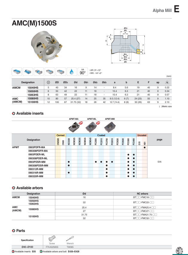 – Đài dao phay Alpha Mill, góc lưỡi cắt 90°