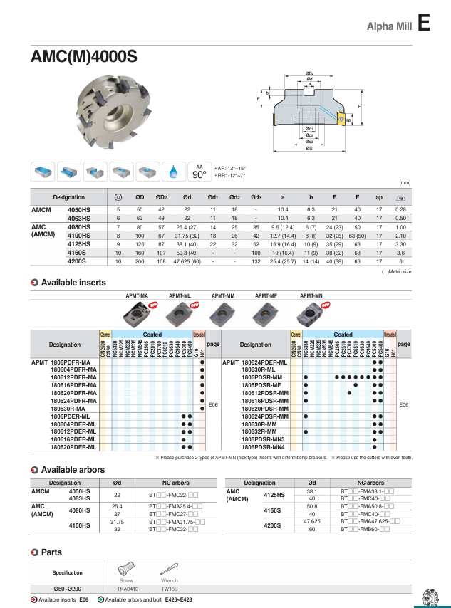 SKU: AMC(M)4000S Danh mục: Đài dao phay Korloy, SẢN PHẨM KORLOY