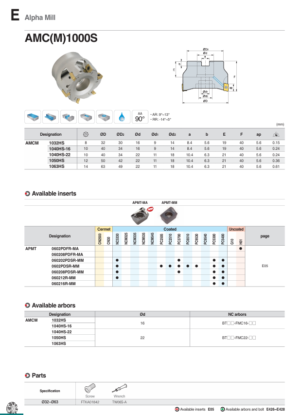 SKU: AMC(M)1000S Danh mục: Đài dao phay Korloy, SẢN PHẨM KORLOY