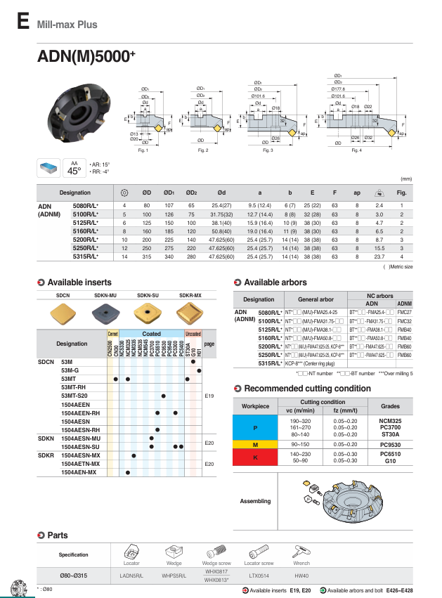 – Đài dao phay Mill Max, góc lưỡi cắt 45°
