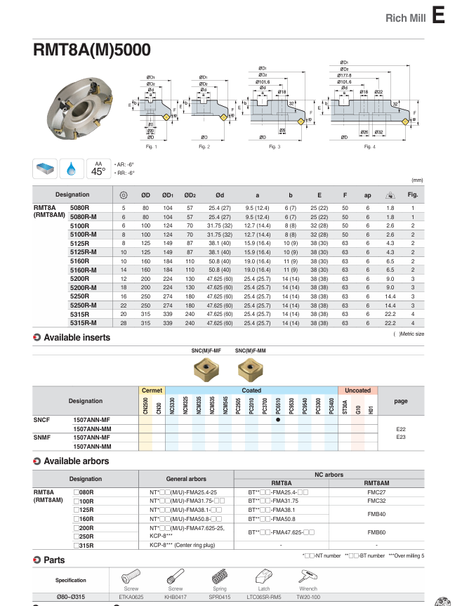 – Đài dao phay Rich Mill, góc lưỡi cắt 45°, kẹp mới kiểu latch