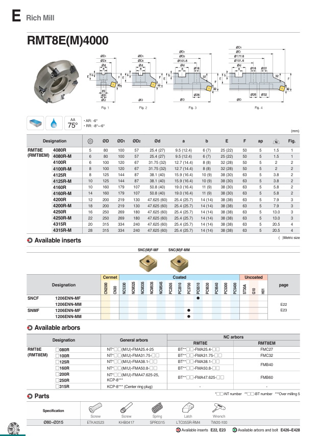– Đài dao phay Rich Mill, góc lưỡi cắt 75°, kẹp mới kiểu latch