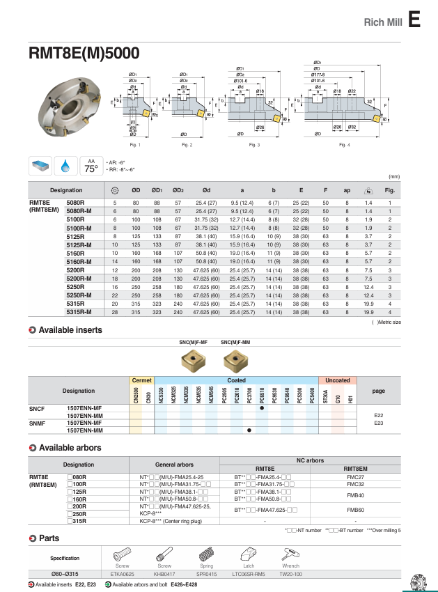 – Đài dao phay Rich Mill, góc lưỡi cắt 75°, kẹp mới kiểu latch
