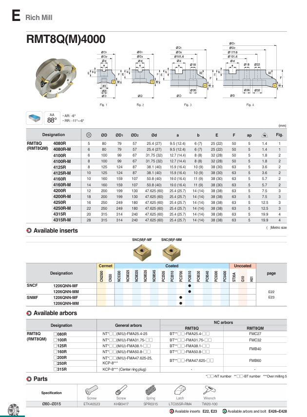 – Đài dao phay Rich Mill, góc lưỡi cắt 88°, kẹp mới kiểu latch.