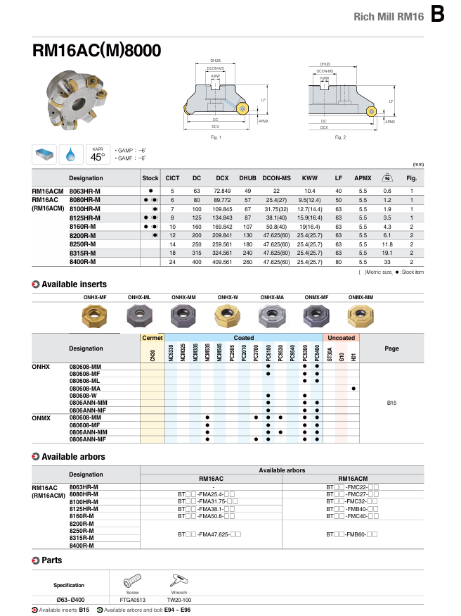 – Đài dao phay Rich Mill, góc lưỡi cắt 45°