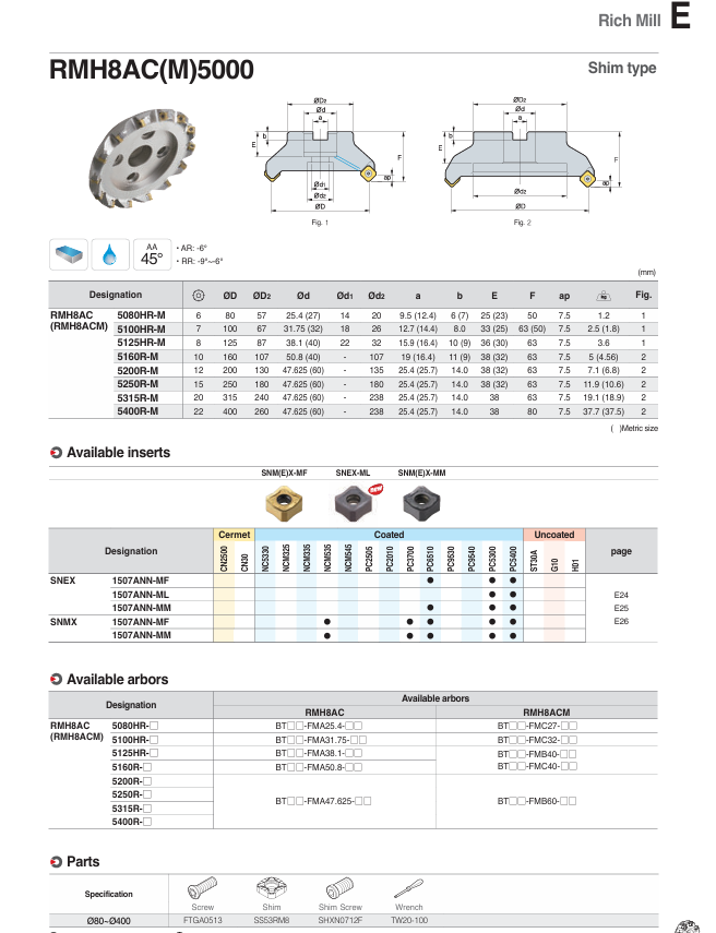 SKU: RMH8AC(M)5000 Danh mục: Đài dao phay Korloy, SẢN PHẨM KORLOY
