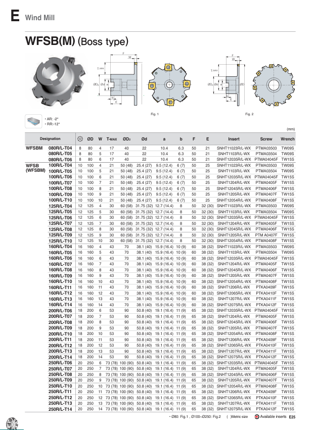 – Dao phay đĩa Wind Mill, phay cạnh toàn phần, loại có bầu (Boss type).