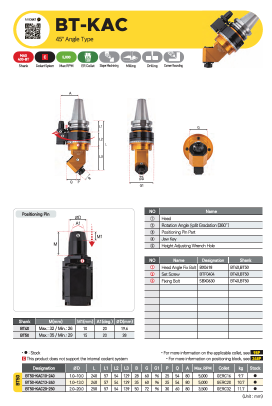 – Đầu chuyển góc cố định 45° dạng mô-đun BT-KAC ó thể điều chỉnh và sử dụng linh hoạt với góc gia công 360˚ sang trái và phải.