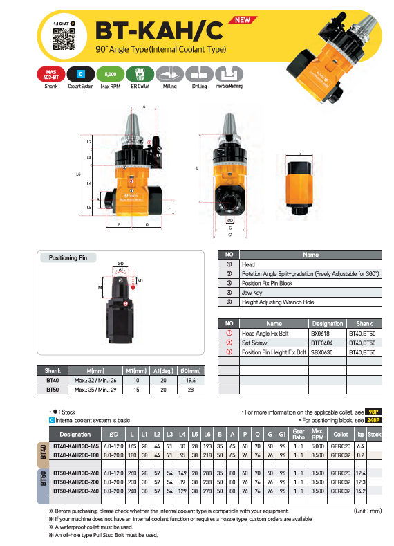 – Đầu chuyển góc dạng mô-đun BT-KAH/C có thể điều chỉnh linh hoạt 360° theo hướng trái và phải, cho phép sử dụng theo nhiều góc gia công khác nhau.