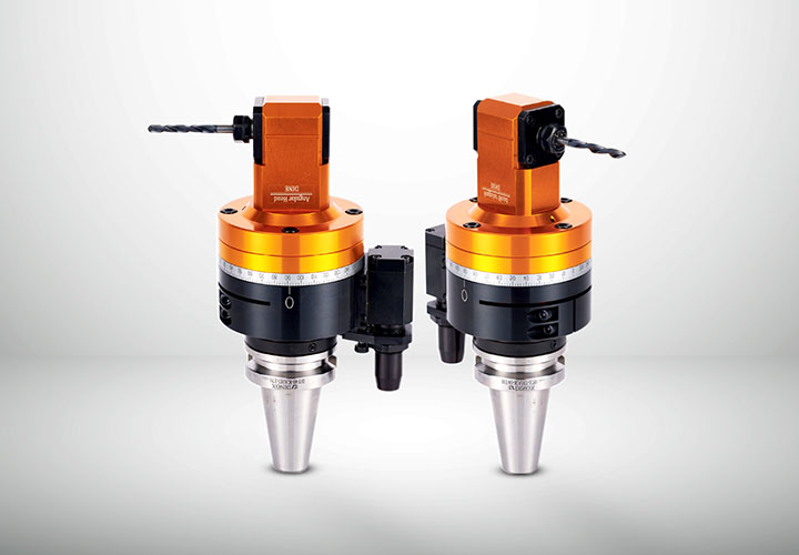 – Đây là loại đầu góc cố định 90° theo phương thẳng đứng, có khả năng xoay 360° sang trái và phải, hỗ trợ nhiều phương pháp gia công như phay, khoan, gia công theo góc tự do và gia công mặt trong.