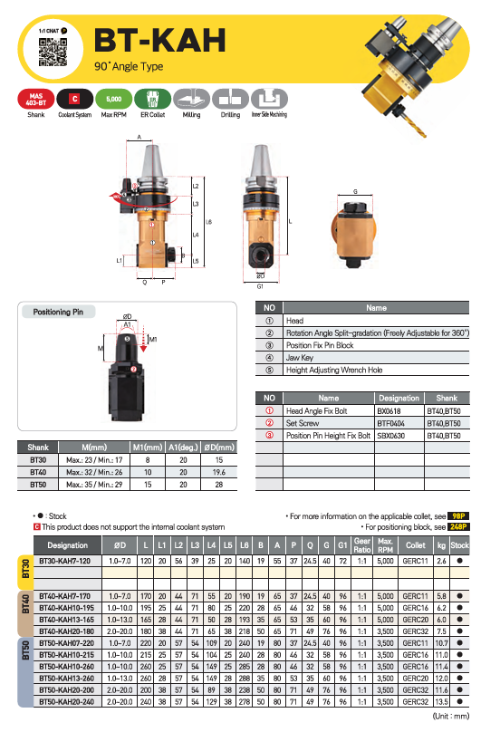 – Đầu chuyển góc dạng mô-đun BT-KAH có thể điều chỉnh linh hoạt 360° theo hướng trái và phải, cho phép sử dụng theo nhiều góc gia công khác nhau.