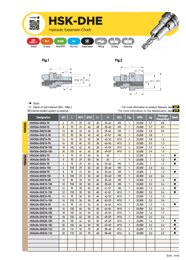 – Dòng đầu kẹp thủy lực DHE được tối ưu cho gia công khuôn mẫu, linh kiện ô tô và các chi tiết chính xác cao yêu cầu độ chính xác gia công vượt trội