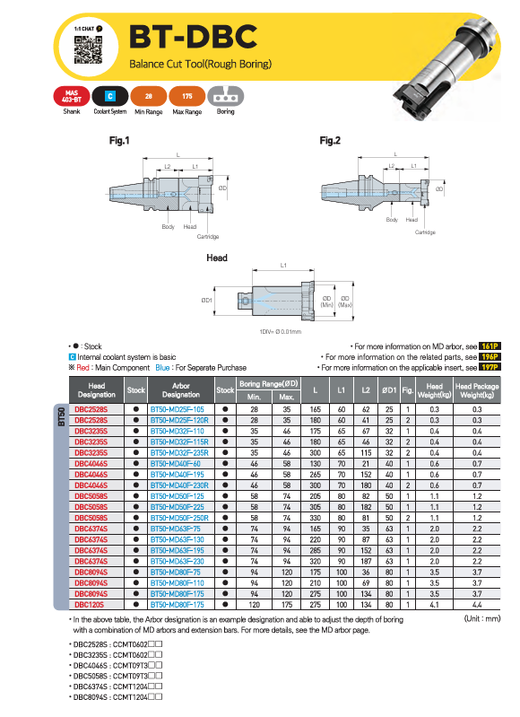 – Đầu kẹp dao doa dạng mô-đun BT-DBC (BT50) chuyên dụng để doa phá thô bề mặt