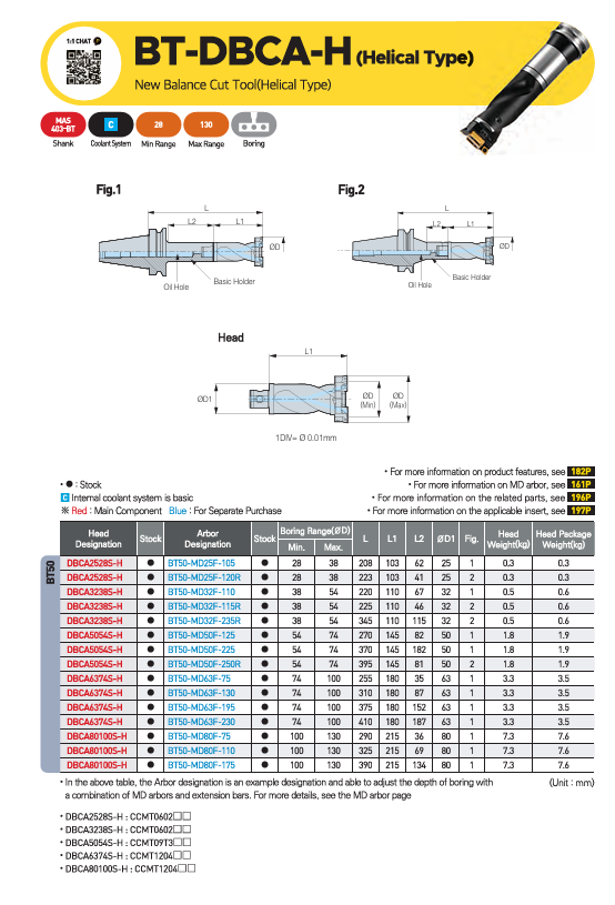 – Đầu kẹp dao doa dạng xoắn BT-DBCA-H có khả năng bao phủ nhiều phạm vi doa khác nhau nhờ áp dụng cấu trúc điều chỉnh đồng thời hai chiều / một chiều bằng cartridge.