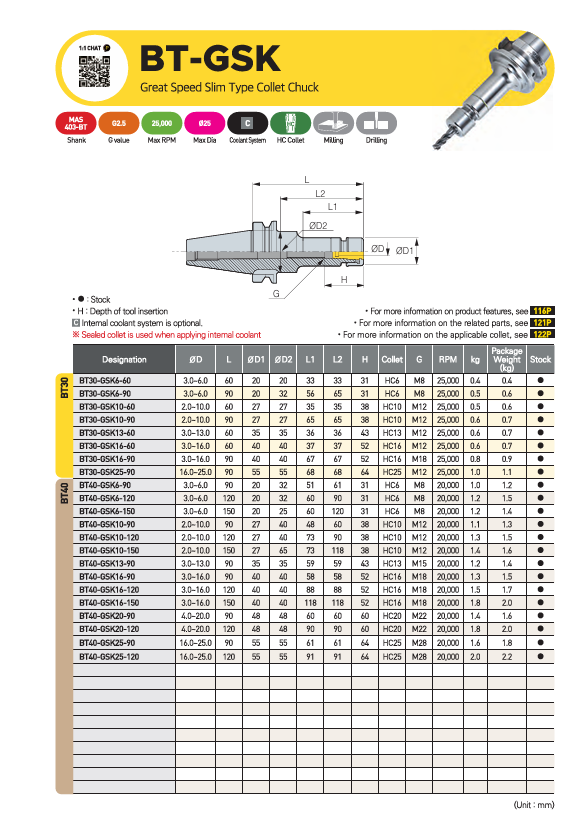 – Đầu kẹp collet thân mảnh tốc độ cao GSK có thể gia công ở tốc độ lên tới 25.000 vòng/phút, đạt độ cân bằng G2.5, giúp đảm bảo độ ổn định khi gia công và nâng cao năng suất.