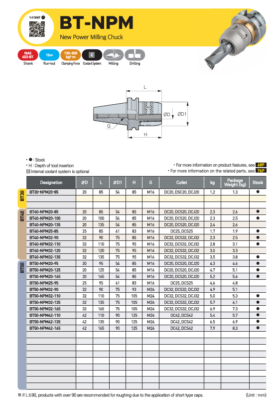 – Đầu kẹp dao phay NPM cho phép hấp thụ rung động và vận hành ổn định trong quá trình phay nhờ lực kẹp mạnh mẽ.