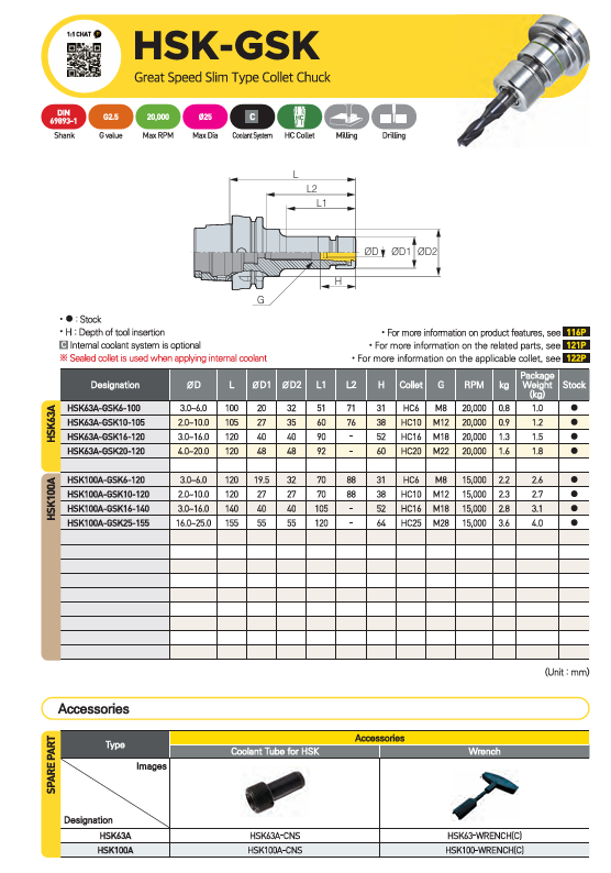 – Đầu kẹp collet thân mảnh tốc độ cao GSK có thể gia công ở tốc độ lên tới 25.000 vòng/phút, đạt độ cân bằng G2.5, giúp đảm bảo độ ổn định khi gia công và nâng cao năng suất.