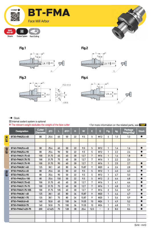 – Đầu kẹp gắn đài dao phay khỏa mặt BT-FMA được sử dụng để kẹp đài dao phay khỏa mặt có đường kính từ 80-200mm