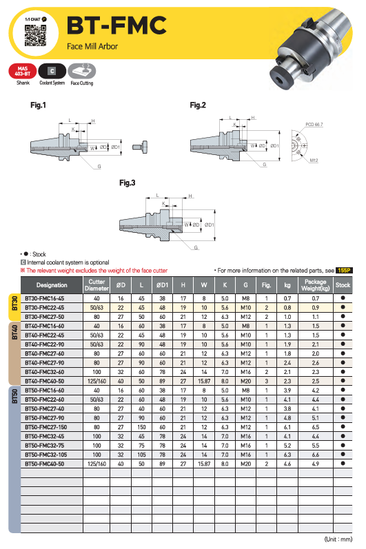 – Đầu kẹp gắn đài dao phay khỏa mặt BT-FMC được sử dụng để kẹp đài dao phay khỏa mặt có đường kính từ 40-160mm