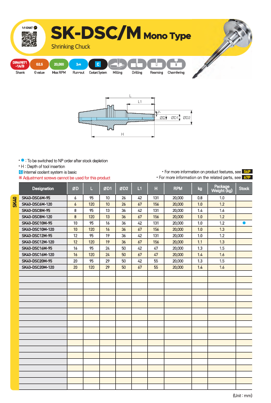 – Dòng sản phẩm đầu kẹp nhiệt SK-DSC/M được thiết kế thân mảnh, chuyên dụng cho gia công rãnh sâu trên máy CNC 5 trục