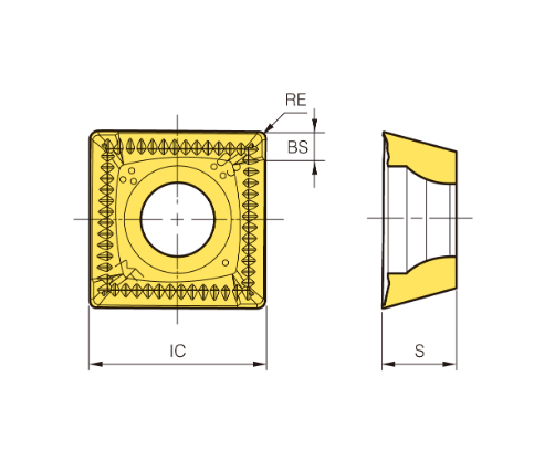 – Mảnh dao phay Future Mill hình vuông với 4 lưỡi cắt, dùng cho gia công nhẹ.