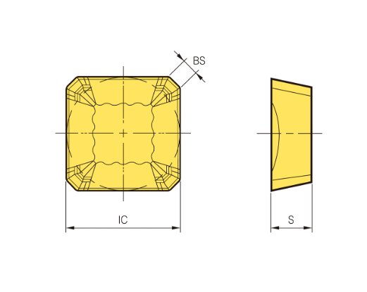 – Mảnh dao phay Mill Max hình vuông với 4 lưỡi cắt