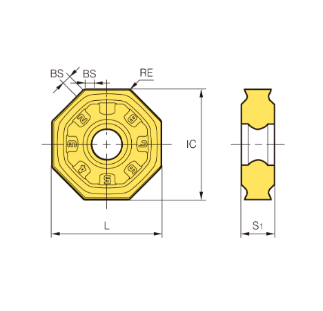 – Mảnh dao phay Rich Mill với 16 lưỡi cắt, dùng cho gia công thường