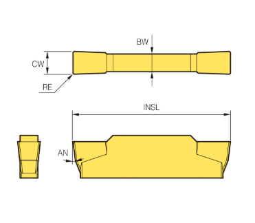 – Mảnh dao tiện cắt rãnh MGT, 2 cạnh cắt, có thể dùng cho gia công tiện và gia công tạo rãnh.