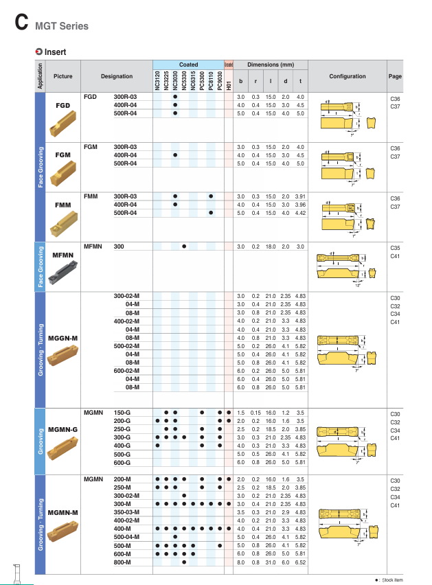 – Mảnh dao tiện cắt rãnh MGT, 2 cạnh cắt