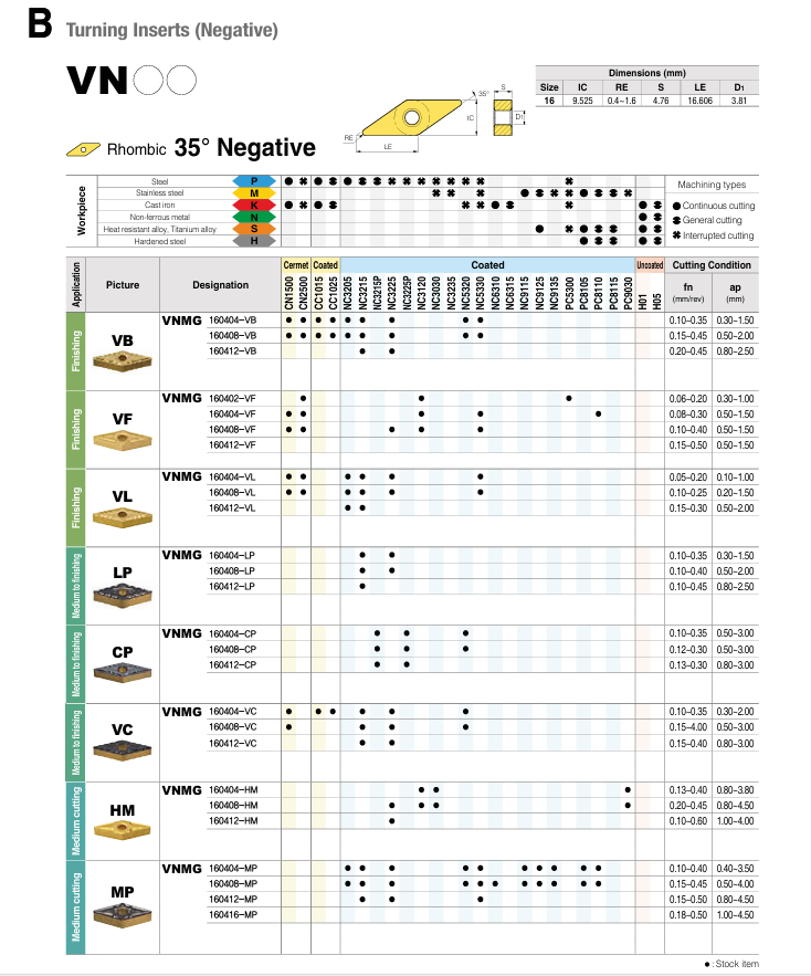 SKU: VNMG-VF Danh mục: Mảnh dao tiện Korloy, SẢN PHẨM KORLOY