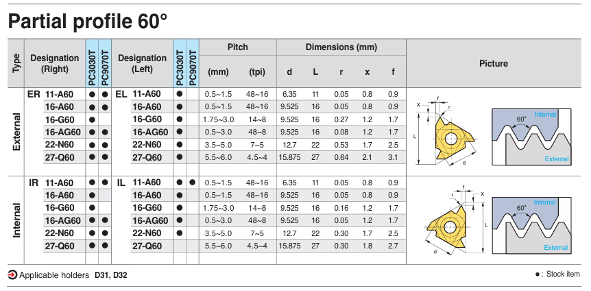 SKU: IR/L-60 Danh mục: Mảnh dao tiện ren Korloy, SẢN PHẨM KORLOY