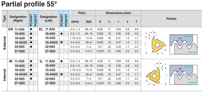 Mảnh dao tiện ren trong IR/L-55 KORLOY