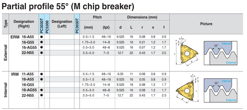 SKU: ERM-55 Danh mục: Mảnh dao tiện ren Korloy, SẢN PHẨM KORLOY